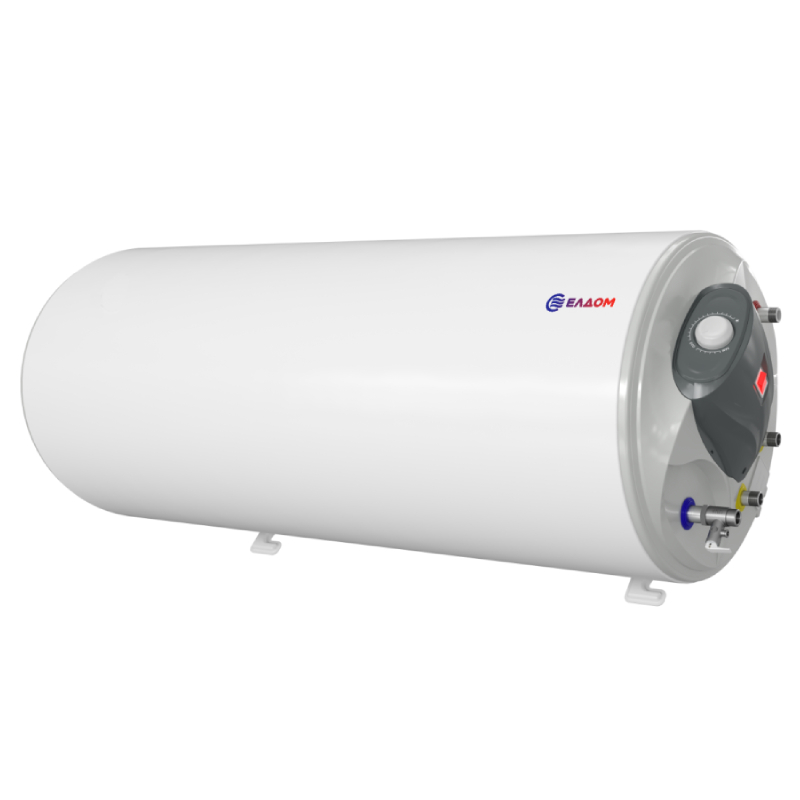 Horizontaler Hochleistungs-Durchlauferhitzer WH12046RSR der Marke ELDOM mit 3 kW Leistung und 120 l Fassungsvermögen. Ausgestattet mit einer Heizspirale. Wasser- und Stromanschluss befinden sich auf der rechten Seite.