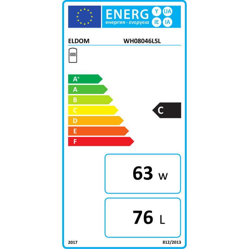 Horizontaler Hochleistungs-Warmwasserbereiter WH08046LSL der Marke ELDOM mit einer Leistung von 2 kW und einem Fassungsvermögen von 80 l. Ausgestattet mit einer Heizspirale. Wasser- und Stromanschluss befinden sich auf der linken Seite.