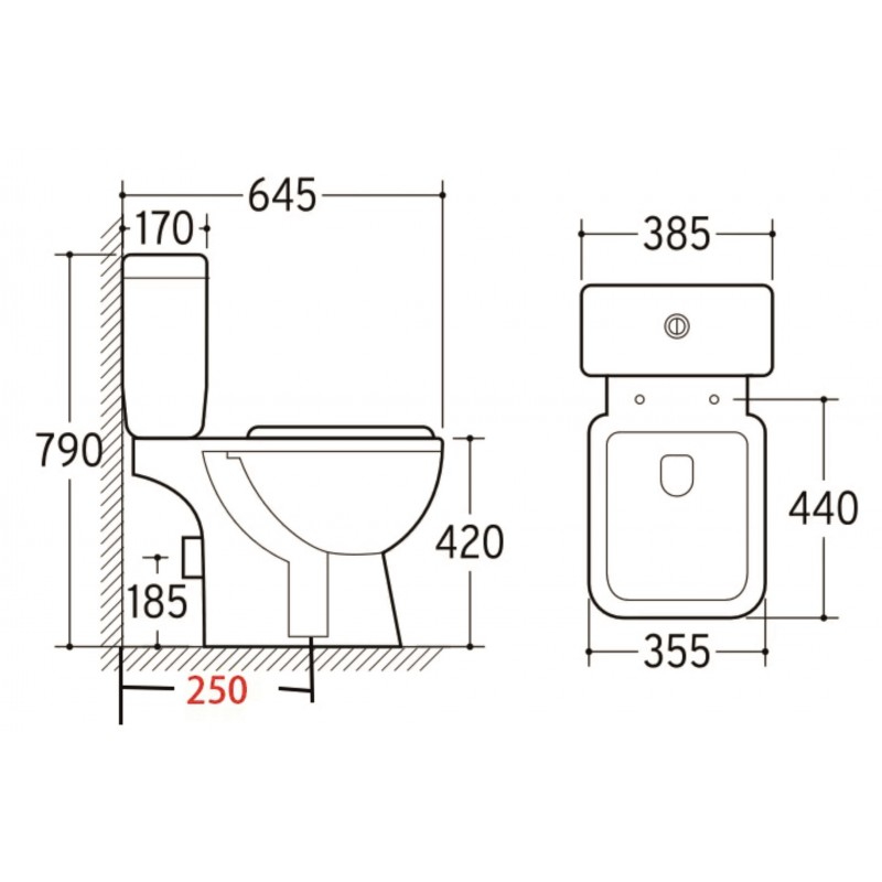 Ausgestattet mit einer Zweimengenspülung (3/6 l), einem Wasserzulauf unten links und einem Ablauf unten, bietet dieses Modell einen sparsamen und effizienten Wasserverbrauch. Dank seiner kompakten Abmessungen (35,5 x 80 x 65 cm) passt es in jedes Badezimmer.