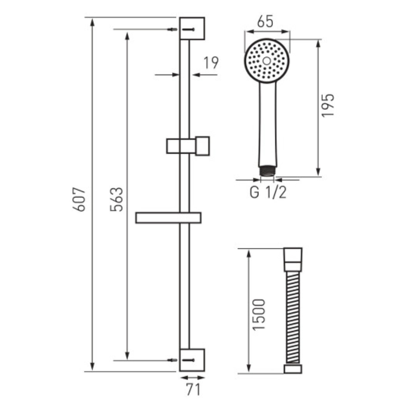 Das System umfasst eine 600 mm lange, bewegliche Metallstange, die eine einfache Anpassung der Handbrauseposition an die individuellen Vorlieben des Benutzers ermöglicht. Die Handbrause hat eine einzige Funktion: Sie sorgt für einen gleichmäßigen und angenehmen Wasserstrahl beim Duschen.