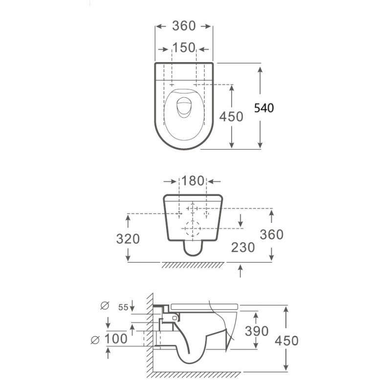 - Freitragende Konstruktion – erleichtert die Reinigung und erzeugt ein Gefühl von Weite.