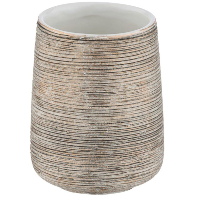 Der Ständer ist in einem eleganten Sandbeige gehalten und verleiht dem Raum eine behagliche und harmonische Atmosphäre. Er eignet sich zur Aufbewahrung von Zahnbürsten, Zahnpasta, Kosmetikartikeln oder Schminkpinseln und trägt dazu bei, den Bereich um das Waschbecken herum ordentlich und aufgeräumt zu halten.