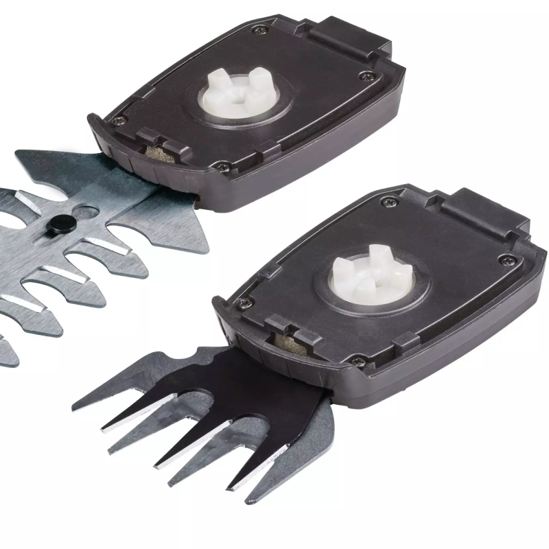 Das Modell wird mit zwei Messern geliefert – 70 mm für präzise Rasenkanten und 110 mm für die Pflege von Sträuchern und Hecken. Der Messerwechsel ist einfach und werkzeuglos möglich. Das abgedeckte Getriebe schützt vor Getriebeöl, und der mitgelieferte Teleskopstiel ermöglicht komfortables Arbeiten in aufrechter Position.