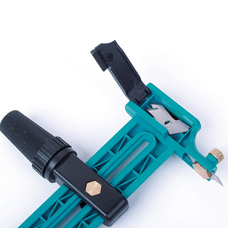 Der Griff des Werkzeugs dient gleichzeitig als praktische Aufbewahrungsmöglichkeit für Ersatzklingen und erleichtert so deren Lagerung und Austausch. Die integrierte Skala ermöglicht präzises Positionieren und Einstellen des Durchmessers. Das Set enthält zwei sofort einsatzbereite Schneidwerkzeuge. Dank des geringen Gewichts von nur 0,068 kg liegt das Werkzeug auch bei längerem Gebrauch leicht und komfortabel in der Hand.