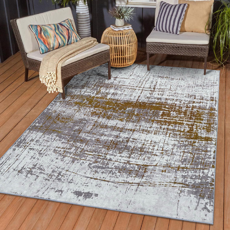 Die niedrige Florhöhe (3 mm) erleichtert die Reinigung, und die rutschfeste Rückseite mit zusätzlicher Polsterung sorgt für Stabilität und Komfort. Das abstrakte Design im Vintage-Stil macht den Stuhl zu einer idealen Ergänzung für moderne wie klassische Einrichtungen.