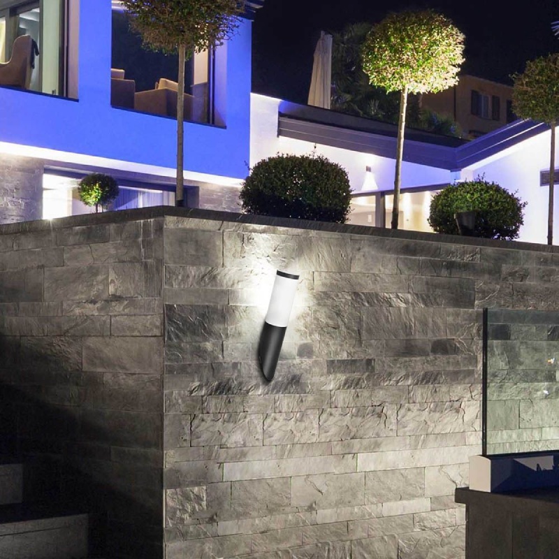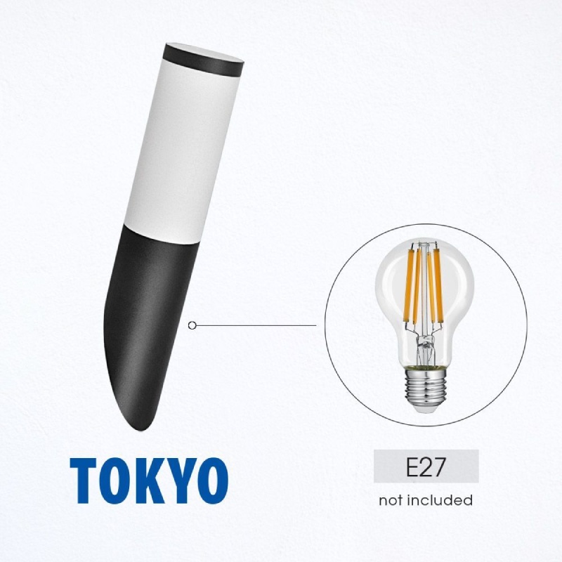 TOKYO ist eine Serie von Gartenleuchten mit Edelstahlgehäuse und modernem, klarem Design in Nickel matt oder Schwarz. Die Serie umfasst eine Fassadenwandleuchte und zwei Gartenleuchten zur Bodenmontage in verschiedenen Höhen. Sie sind für Leuchtmittel mit E27-Fassung geeignet.