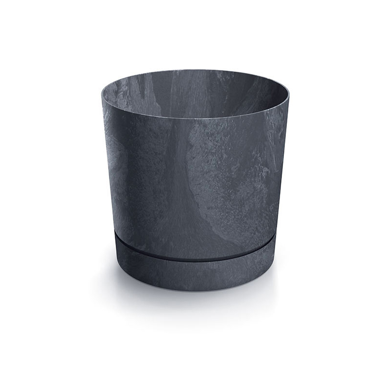 Der Pflanzkübel besteht zu bis zu 33 % aus Holzfasern und zeichnet sich durch seine markante, strukturierte Oberfläche und seine warme, natürliche Optik aus. Das Material verleiht ihm nicht nur ein einzigartiges Aussehen, sondern trägt auch zu einer umweltfreundlicheren Produktion mit geringerem CO₂-Fußabdruck bei.