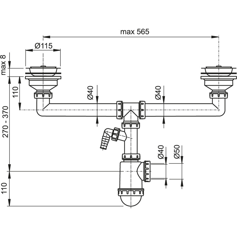 Double siphon for washbasin brand ALCAPLAST, model A453P. The siphon is made of high quality PVC material and is designed for sinks with holes ф50/40mm. The grille is made of stainless steel and has a size of 115 mm.
