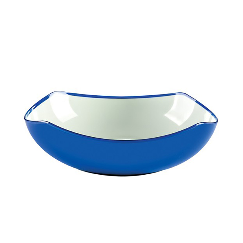 Colored plastic bowl from the Aqua series of the Turkish brand AKYUZ in a square shape. It is a convenient and practical kitchen utensil for serving fruit. It has a capacity of 2.4 liters. The bowl impresses with its beautiful and exquisite design with oval edges. The photo is illustrative.