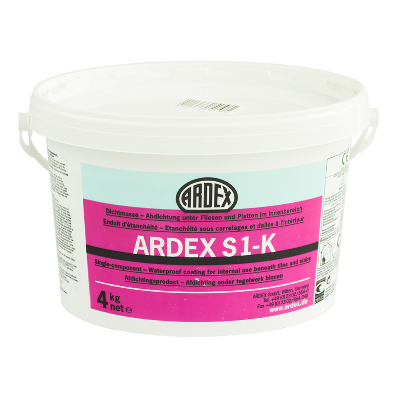 One-component waterproofing S 1-K 20 kg alternative ARDEX. For internal use. One-component alternative waterproofing allows for plastering and laying with a roller or brush.