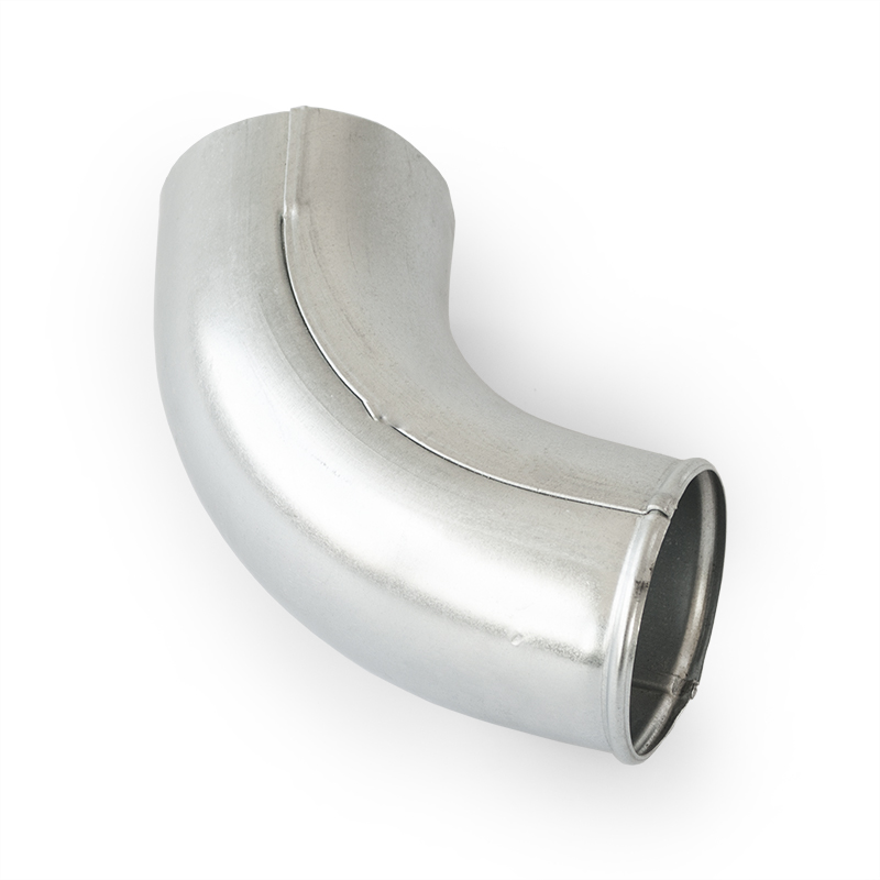Finishing galvanized elbow with hole size ф80 of the brand KJG. Galvanized sheet metal is one of the most famous and widespread materials, thanks to its low price and high quality. It is not as resistant to corrosion as colored galvanized sheet metal, which is the only drawback of this material. To improve the quality of galvanized sheet metal, it is desirable to cover it with additional surface protection.