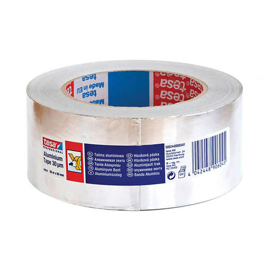 Aluminum tape TESA 50524, designed for insulation of pipes, ducts and air ducts. Fixes materials with aluminum coating.
