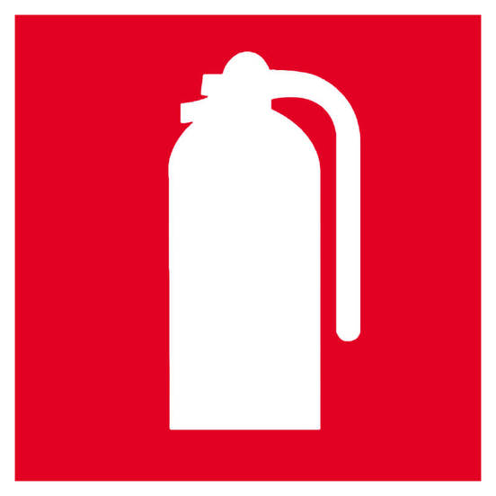 Self-adhesive sticker APLI with dimensions 114 x 114 mm, designed for glass doors, showcases and more. It serves as an information board showing the location of fire extinguishers in shops or offices.