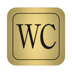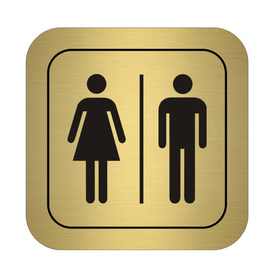 Marking sign YANTER "WC for a boy / girl", intended for placing doors or walls on toilets, changing rooms, etc. The pictogram is engraved and made of PVC with dimensions 95 x 95 x 1.5 mm. Available in golden color.
