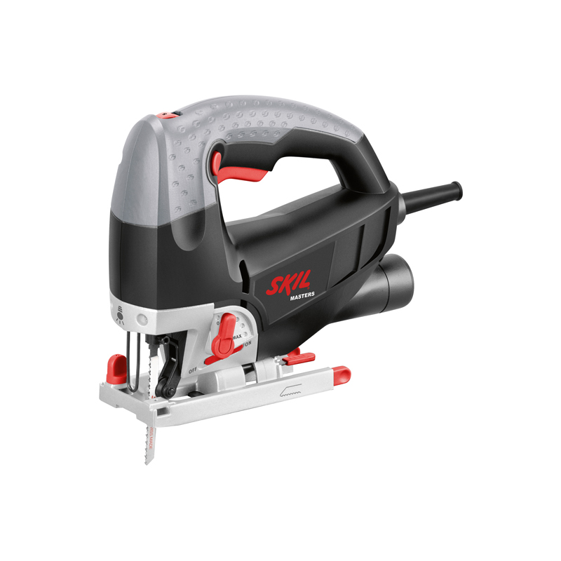 Jigsaw 4585 ME with speed preselection, low vibration helps for smooth results. It has orbital settings for faster cutting action. The lamp and the blowing mechanism allow clear visibility of the cut line in any situation. It has a strong and stable base with an anti-scratch surface.