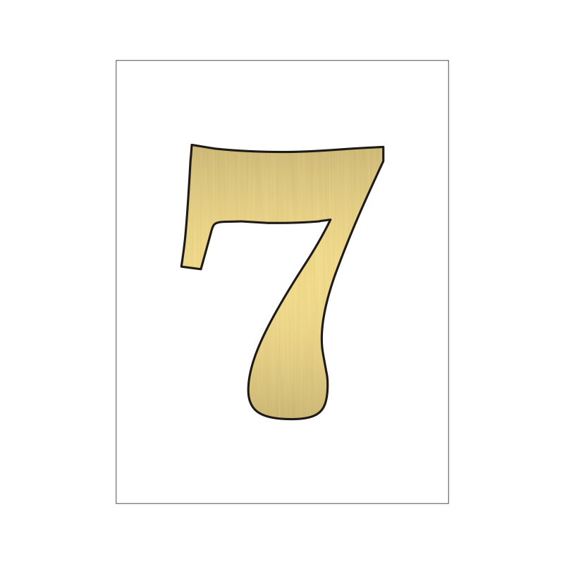 Self-adhesive sign YANTER"Figure 7" in a rectangular shape. Designed for door or wall mounting. The pictogram is in a set of 3 pieces, each measuring 50 x 1.5 mm. Available in golden color.