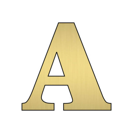 Self-adhesive sign YANTER "letter A". It is designed for placing on a door or wall. The pictogram is in a set of 3 pieces, each measuring 50 x 1.5 mm. Available in golden color.