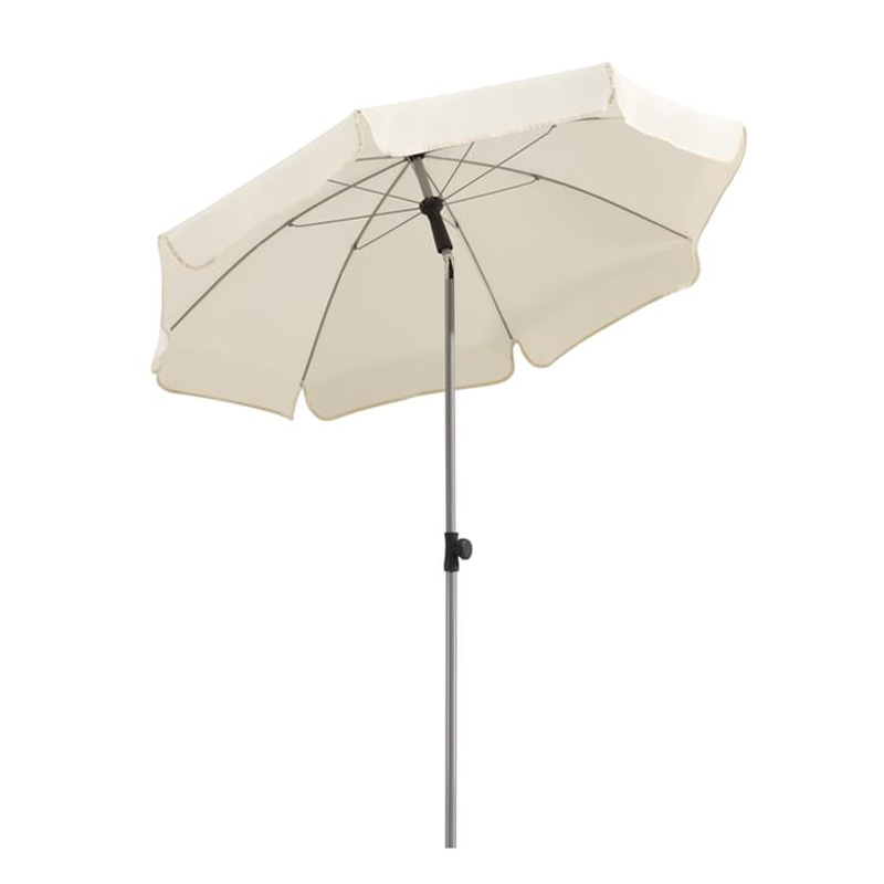 Garden umbrella from the Locarno series of the SCHNEIDER brand in ecru color. The umbrella has a diameter of 150 cm, a height of 220 cm and 8 metal rods that keep the canvas always perfectly stretched. The garden umbrella offers a high degree of UV protection - factor 50+. Its construction is made of metal and the canvas is made of 100% water-repellent polyester. The frame is powder coated and the profile has a diameter of ф22/25mm. The umbrella is equipped with a mechanism for tilting and adjusting the angle, which protects from the sun's rays.