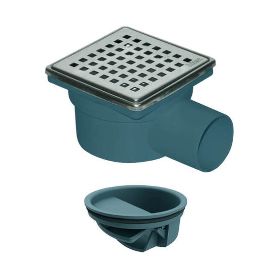 The AKVO siphon is designed for the bathroom floor. Suitable for lateral drainage. The body of the model is made of PVC, and the frame and grille - stainless steel. The side outlet of the siphon is 50 mm in size and the size of the grate is 100 x 100 mm.