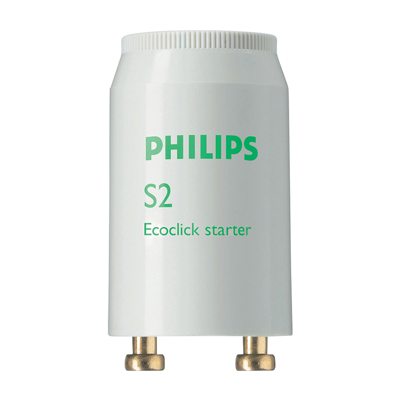Starter PHILIPS for lighting fluorescent lamps with electromagnetic gear. The starter is 2-pin and is made of non-combustible plastic.