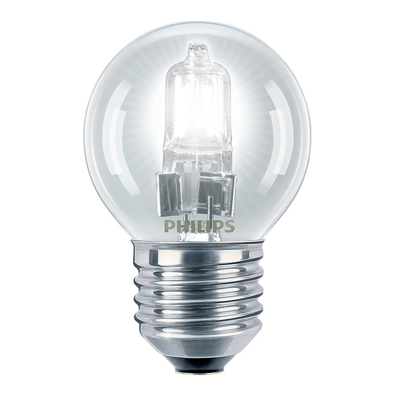 Halogen lamp type Sphere P45 with power 18W and socket E27 ECO CLASSIC by PHILIPS. This new classic lamp emits sparkling, natural halogen light, allowing the full richness of colors in your interior to be revealed in the best light. Instant brightness, no delay. You control the level of illumination you need. This lamp lasts twice as long as a standard light bulb. Therefore, it replaces two lamps for less cost and less fuss. Life expectancy is based on an average use of 2.7 hours per day or 1000 hours per year.