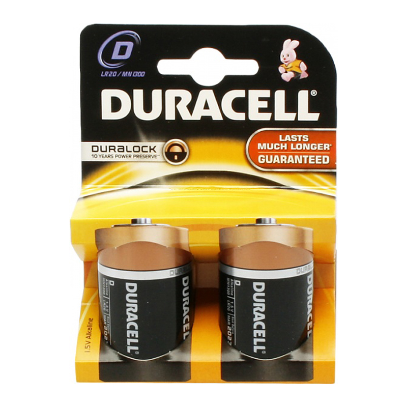 2 alkaline batteries DURACELL D Plus MN 1300 K2 with voltage of each of the batteries 1.5V.