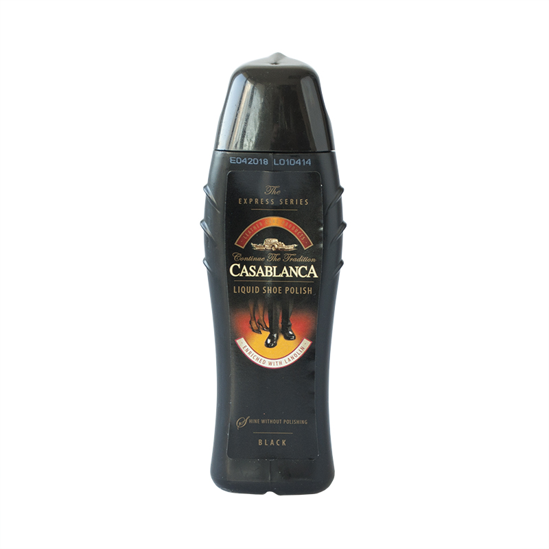 Liquid shoe polish of the CASABLANCA brand in black color. Maintains and refreshes the skin of the shoes. The paint is applied as a thin layer over the entire surface of the pre-cleaned shoe, then allowed to dry. No additional polishing required.