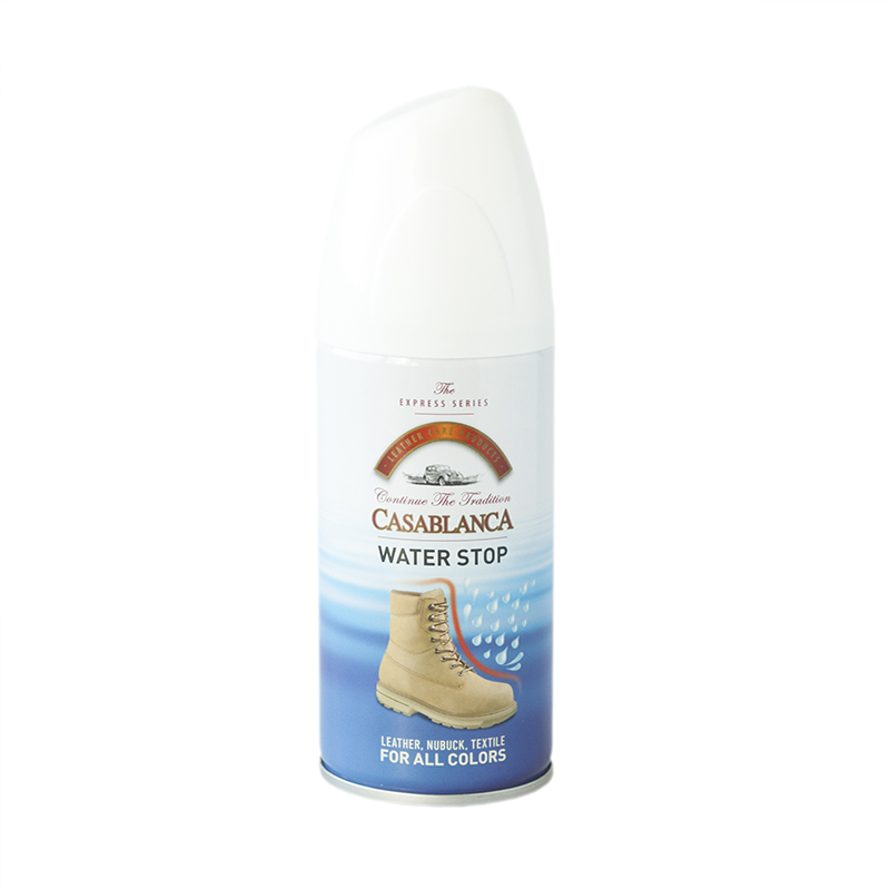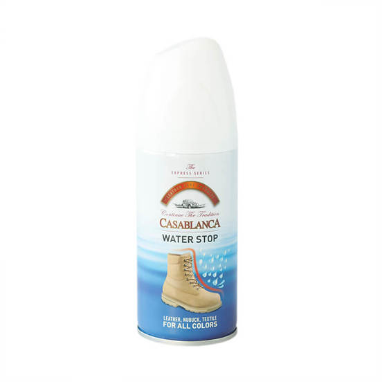 Water-repellent spray for shoes of the CASABLANCA brand. Suitable for all products made of natural and artificial leather, nubuck and suede. Protects shoes from water, salt and greasy stains. The impregnating spray is neutral, which makes it applicable to any color of shoes. Refreshes and restores their appearance.