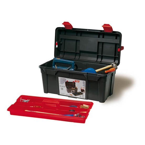 TAYG tool case + organizer model 34-1B. Its dimensions are 580 x 285 x 290 mm. It is made of highly resistant PVC material. It has a strong, ergonomic handle for a secure and comfortable grip.