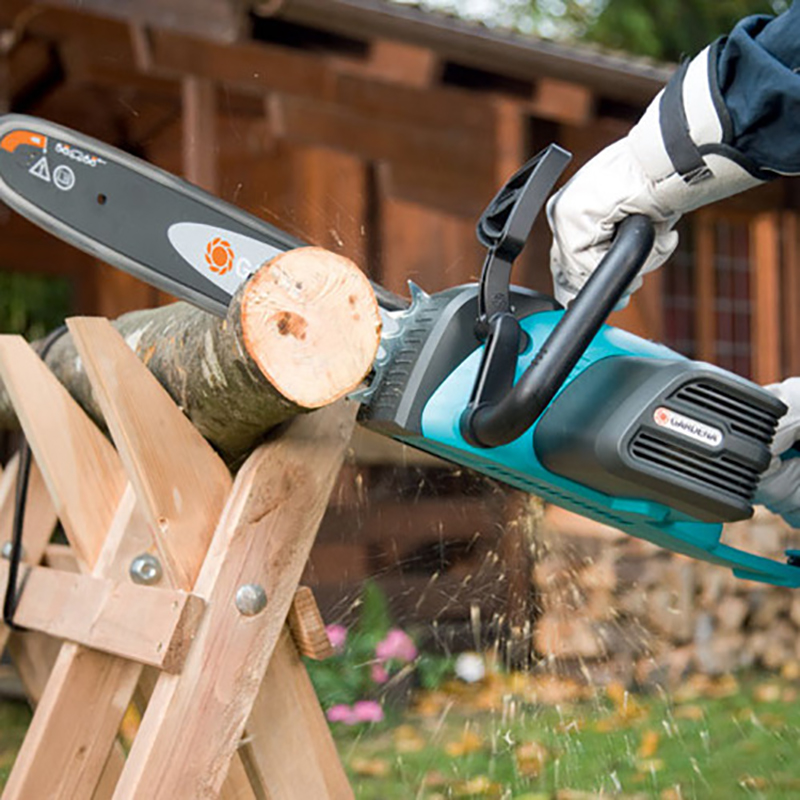 The "Quick-stop"function has been added for safe operation. It stops the chain within 0. 15 seconds, thus preventing injuries from the moving chain. The GARDENA CST 3518 chainsaw is equipped with a handle with soft components so that you can hold it safely and securely in any position.