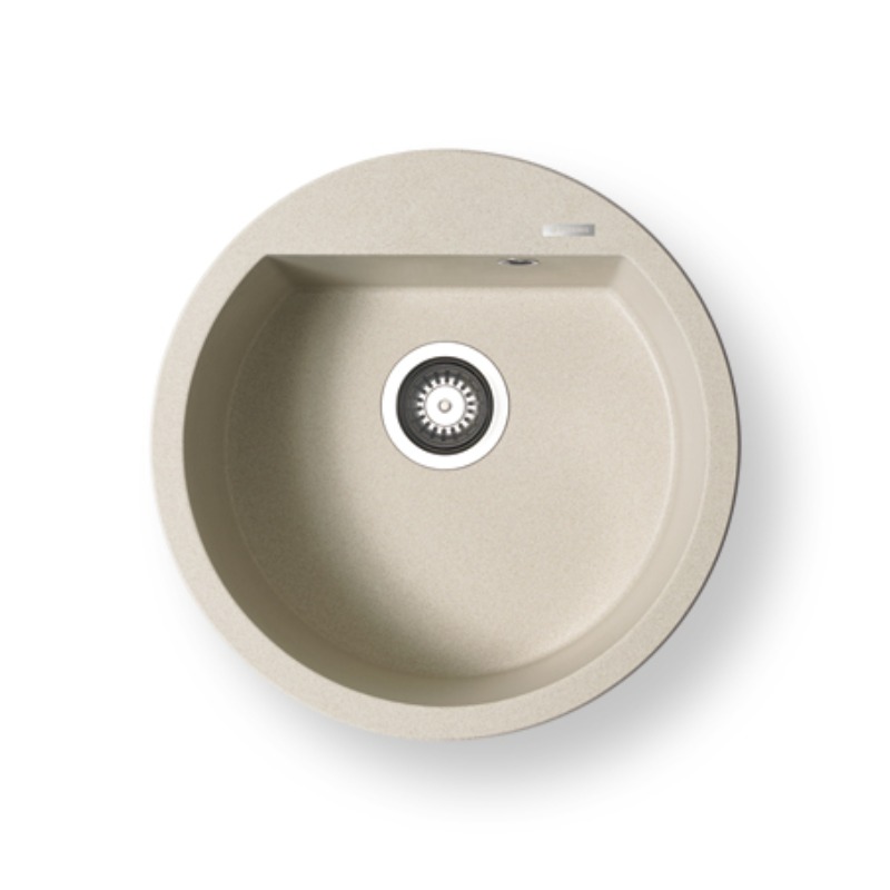 PYRAMIS kitchen sink, designed to be built into a cabinet with a light opening of 50 cm. Pyrogranite kitchen sink for built-in is from the ALAZIA series and measures φ51 cm. The size of the trough is φ45 cm and the depth is 20.5 cm. The sink set includes a saver siphon space, as well as a grid for the siphon.