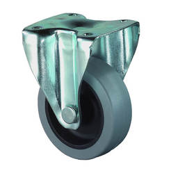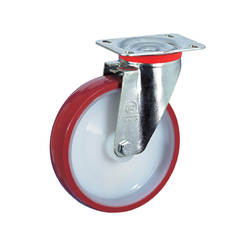 Swivel wheel on plate and bushing BS ROLLEN Ф200mm is suitable for trolleys and machines with medium load capacity. Suitable for indoor and outdoor use. This type of wheels are designed for all types of floors, even outdoors. They are used for strollers with low to medium load. For industrial use, tubular trolleys, trolleys for the food and chemical industries, as well as for mobile scaffolding.