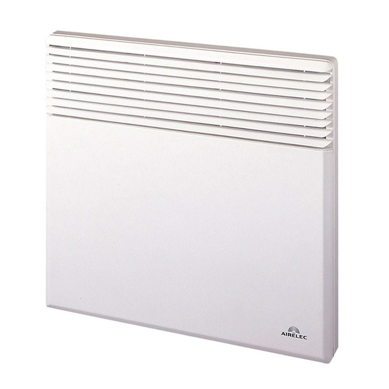 Wall panel convector Tactic ET of the AIRELEC brand. The convector has a power of 2500W. It works with natural convection and is completely silent. It has a precision electronic thermostat that provides maximum comfort with minimum energy costs. Constantly maintains the set temperature in the room and directs the warm air through a directing grille.