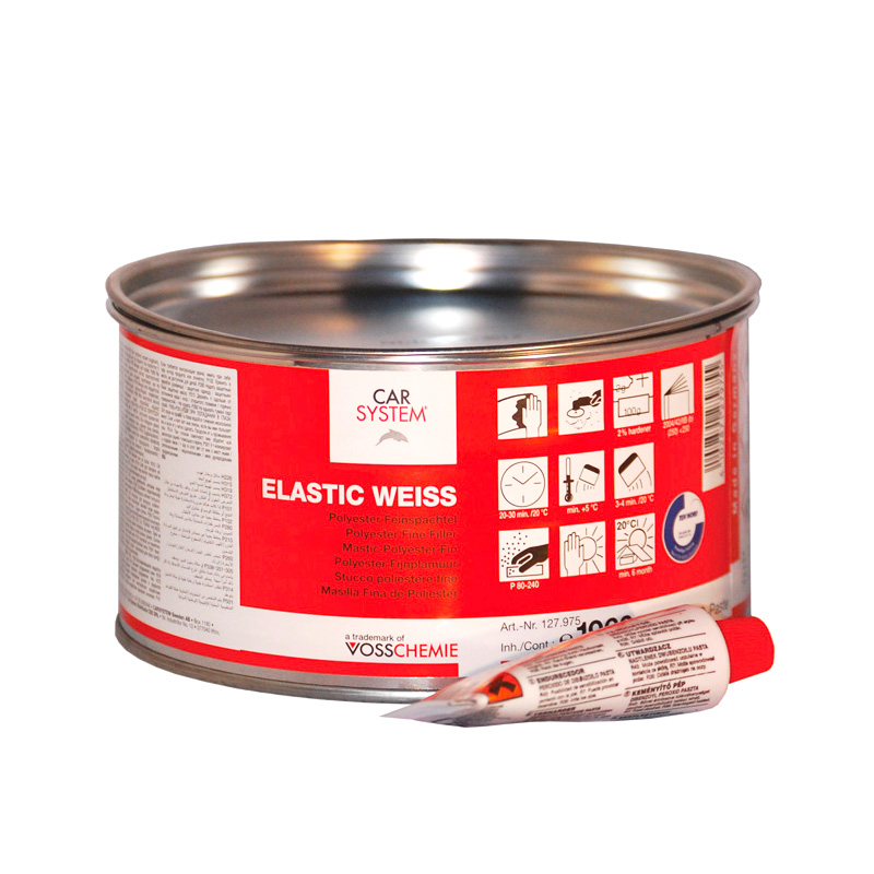 Car kit Elastic CAR SYSTEM in the tank of 2 kg is designed to fill in bumps and small dents. Provides a smooth surface without pores. The car kit is easy to sand with sandpaper.