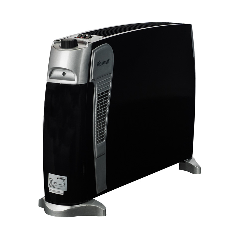 The convector of DIPLOMAT is characterized by fast heating of the premises and accelerated circulation of warm air. There is a special built-in protection against overheating. The housing is metal, made with an impressive design, ensuring optimal airflow. For greater security, the convector has a metal grille. It must not be covered, especially when the appliance is running, as there is a risk of fire or damage to the appliance. Placed on the floor, the convector is characterized by its quiet operation. Its dimensions are (W x H x D) 70 x 52 x 18.5 cm.