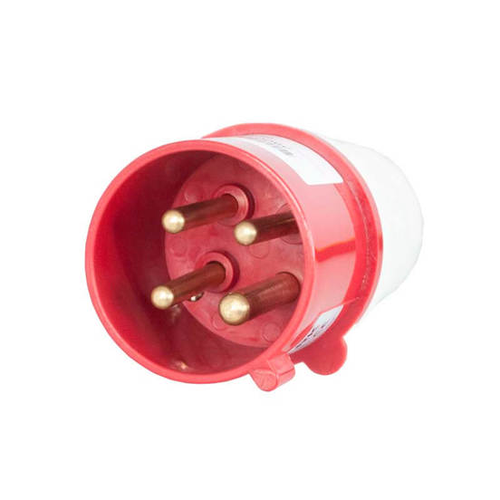 Plug for the ELMARK Eurobox with rated current and voltage, respectively 32A and 380V. The plug for the Eurobox has 3P+E poles and degree of protection IP44. It is made of plastic. It is used in industry when using manual machines.