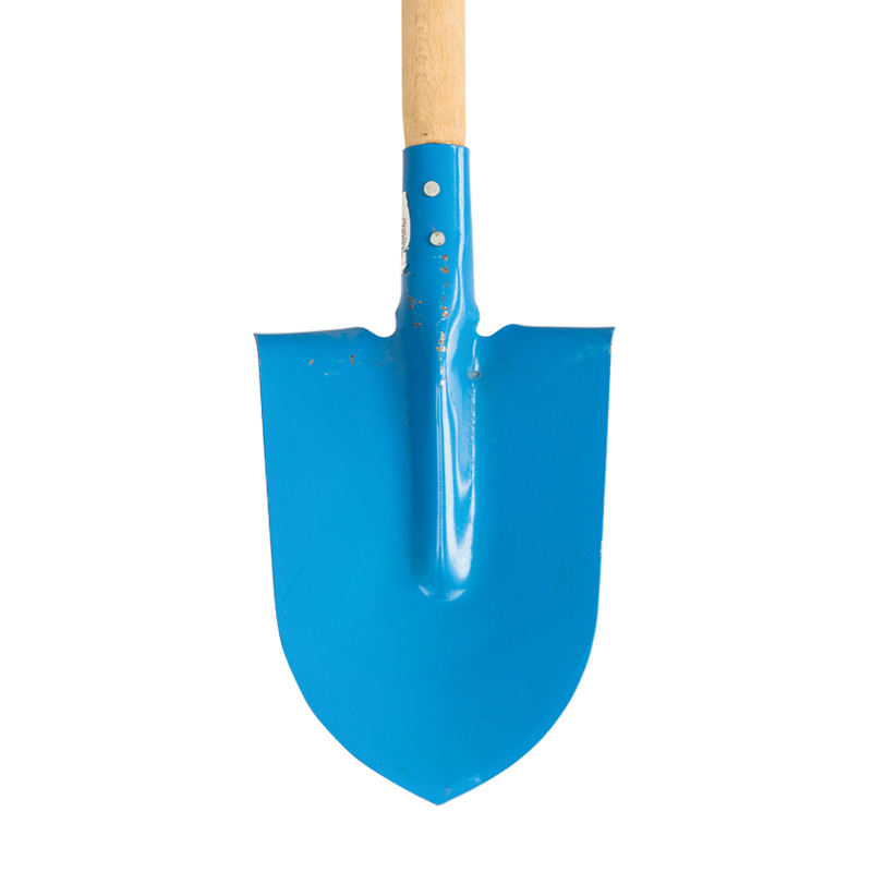 Metal garden straight shovel with sturdy wooden hoe. The shovel is made of high quality steel and is firmly attached with two rivets to the handle. The garden straight shovel is 130 cm long.