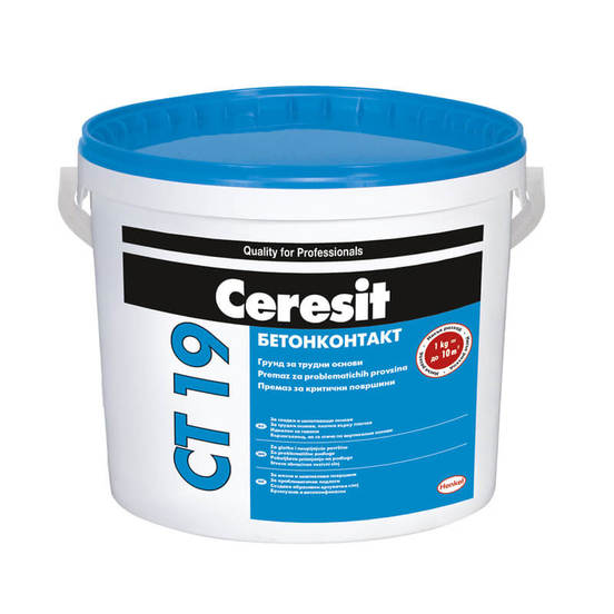 Contact primer Concrete contact ST19 from CERESIT solvent-free, ideal for ceilings. Contact primer can be used indoors and outdoors, as well as on difficult and non-absorbent substrates.