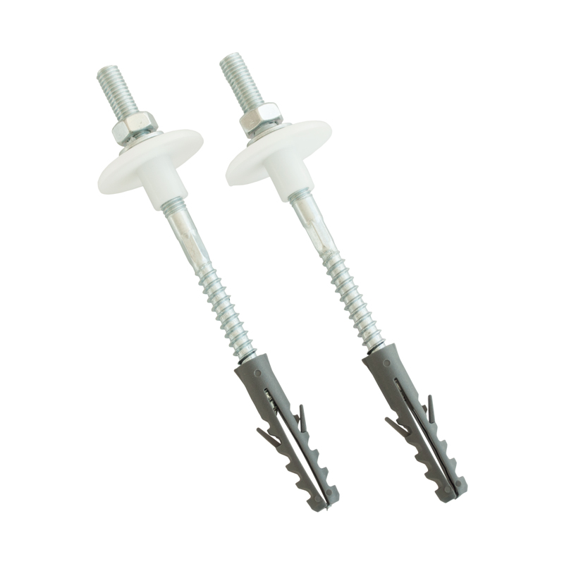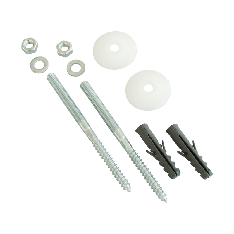 Complete set of fasteners for mounting a porcelain sink, consisting of 10 parts: