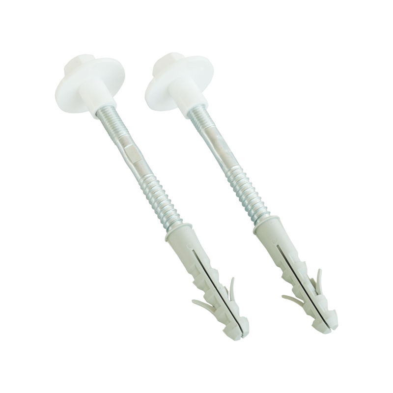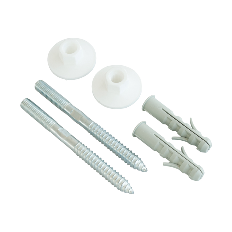 Set of fasteners for mounting a porcelain sink, consisting of 6 parts with screw size M10 x 140 mm and dowel size ф14 x 80 mm.