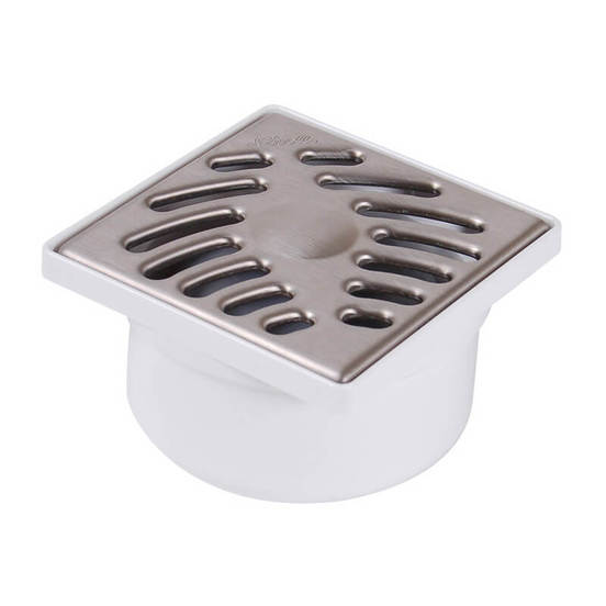 Straight siphon for bathroom and other wet rooms with vertical grille of the NICOLL brand. Suitable for bottom drainage. The body is made of PVC and the frame and grille are made of stainless steel. The grate of the floor siphon for the bathroom is 100 x 100 mm, and the size of the vertical outlets of the siphon itself are suitable for connection to sewer pipes with a diameter of Ф40 mm and Ф50 mm.