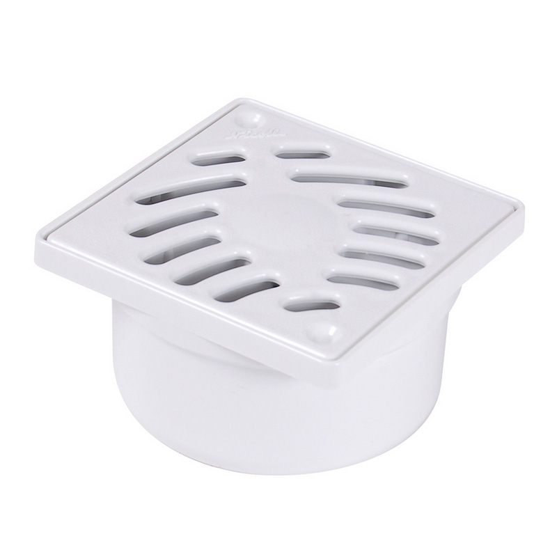 Straight siphon for bathroom and other wet rooms with vertical grille of the NICOLL brand. Suitable for bottom drainage. The body and the grille are made of PVC. The grate of the floor siphon for the bathroom is 100 x 100 mm, and the size of the vertical outlets of the siphon itself are suitable for connection to sewer pipes with a diameter of Ф40 mm and Ф50 mm.