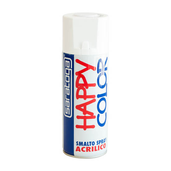 HAPPY COLOR SARATOGA spray paint is a fast-drying alkyd paint in white gloss color. It is used indoors and outdoors, drying to the touch in 15 minutes, and up to 45 minutes for complete drying.