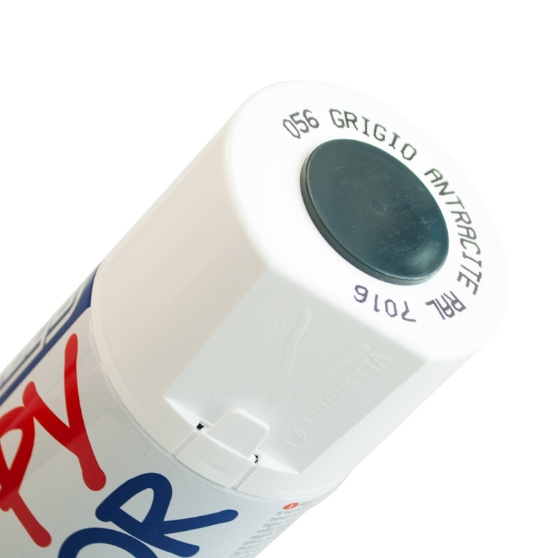 HAPPY COLOR SARATOGA spray paint is a fast-drying anthracite alkyd paint with RAL № 7016. It is used indoors and outdoors, dries to the touch in 15 minutes, and takes up to 45 minutes to dry completely.