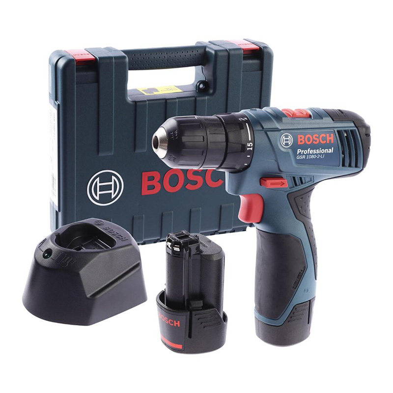 The GSR 1080-2-LI BOSCH Cordless Screwdriver Kit includes: