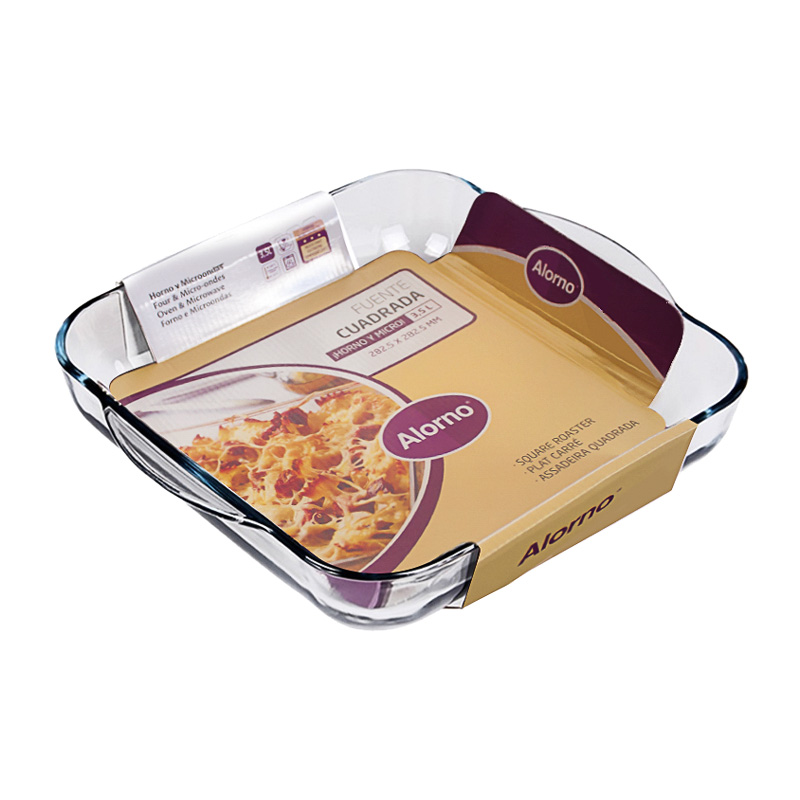 ALORNO baking tray. Made of yen glass. The tray is in a square shape with dimensions of 28 x 28 cm (with the handles 32 cm).