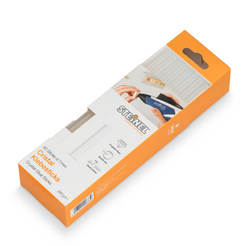 BOLTER hot glue gun. The gun has a power of 10W and the supply voltage is 230V. The device heats up to the optimum operating temperature within 5-7 minutes. The hot glue gun works with silicone rods with a diameter of 7.2 mm.