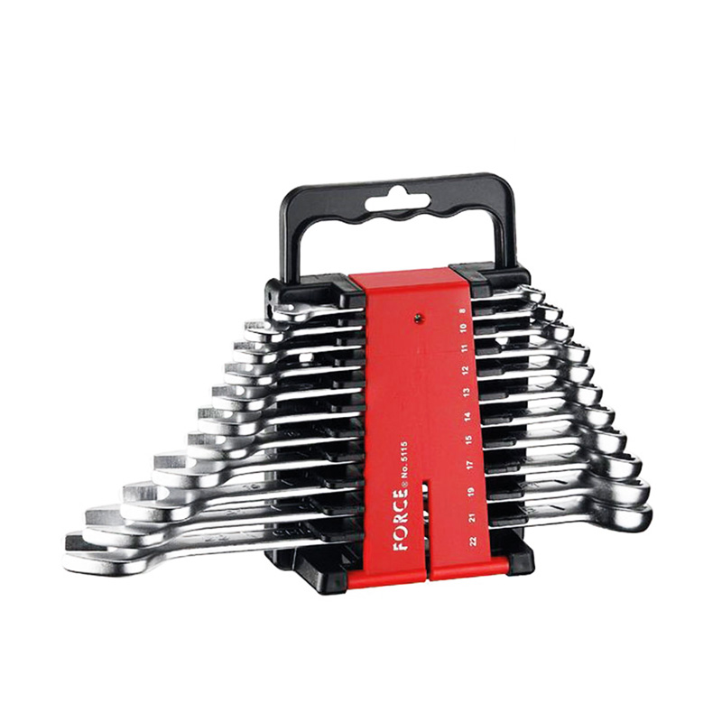The spanners are in sizes of: 8 mm, 10 mm, 11 mm, 12 mm, 13 mm, 14 mm, 15 mm, 17 mm, 19 mm, 21 mm and 22 mm. These are one of the most common types of keys, which determines their wider applicability in various activities of servicing cars, machines, etc. The total weight of the set is 1350 g. The product is available in a convenient package of 11 parts.