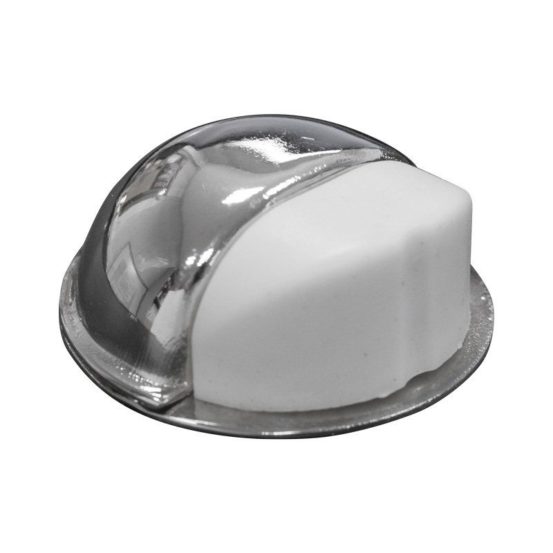 Door stopper of the Spanish brand AMIG, model 400. It is a combination of a metal body in chrome color and white rubber. Its size is ф50mm.