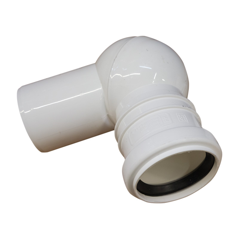 Breakable PVC elbow size f50. For plumbing for wastewater. The elbow serves to change the direction of the pipes and more precisely to connect them at an angle.The broken PVC elbow is most often used when connecting a toilet bowl to the sewer.